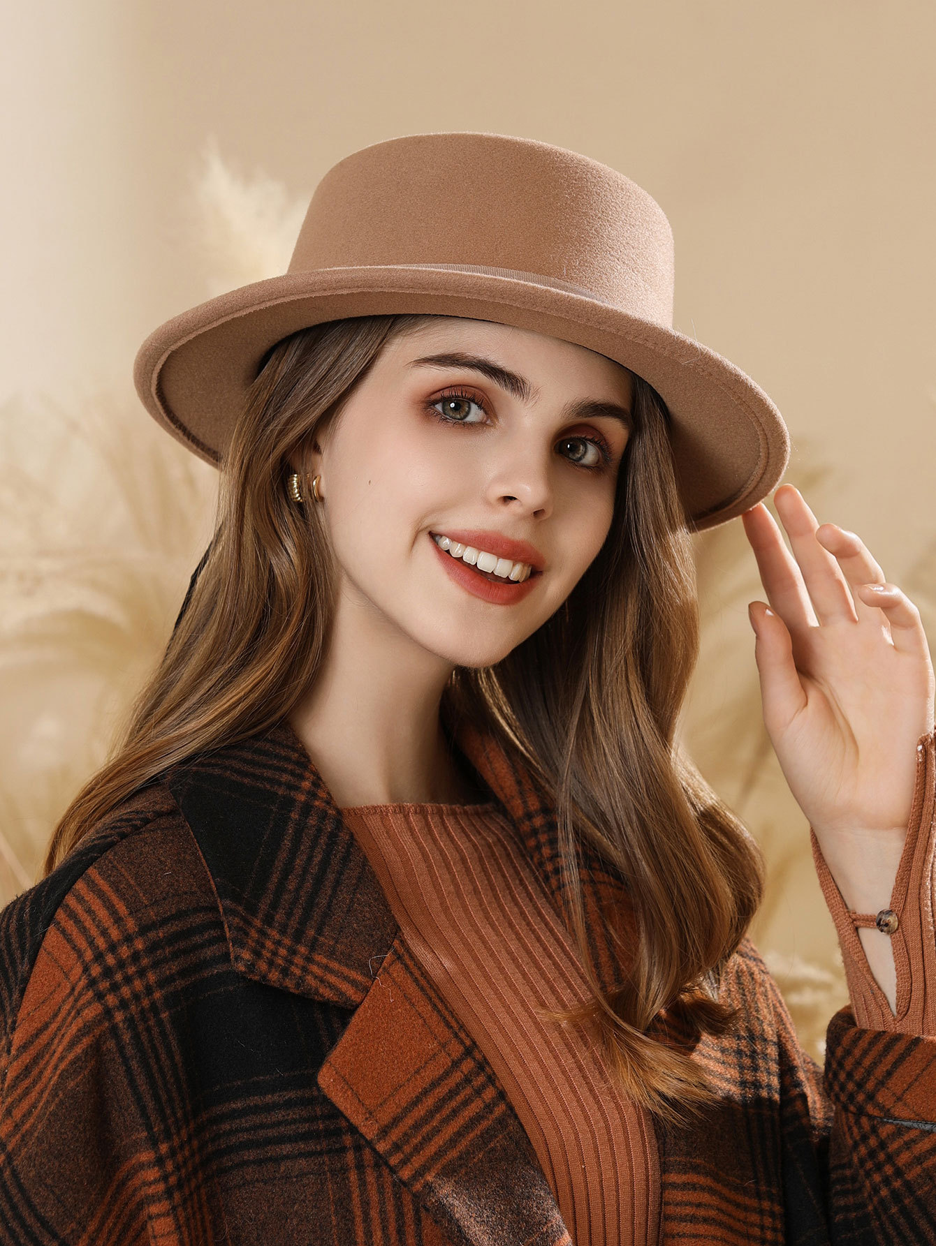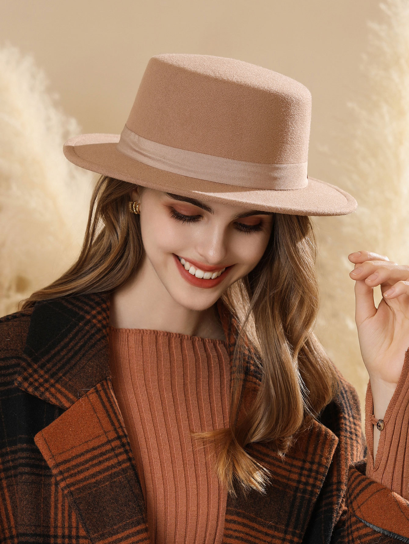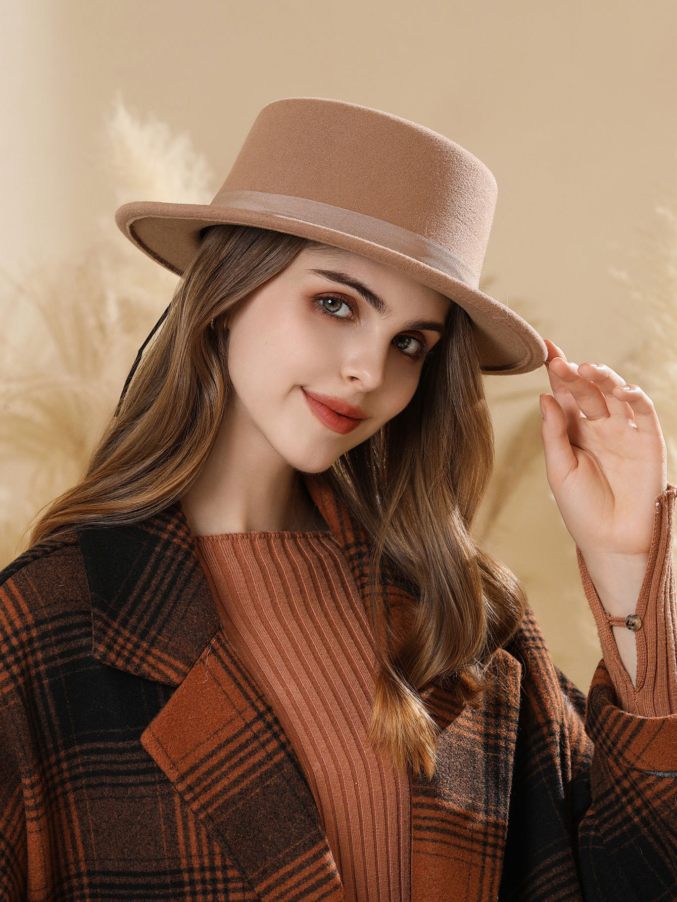 Hut aus Pelzfilz, britischer, eleganter Retro-Hut, große Krempe, lässiger Zylinder