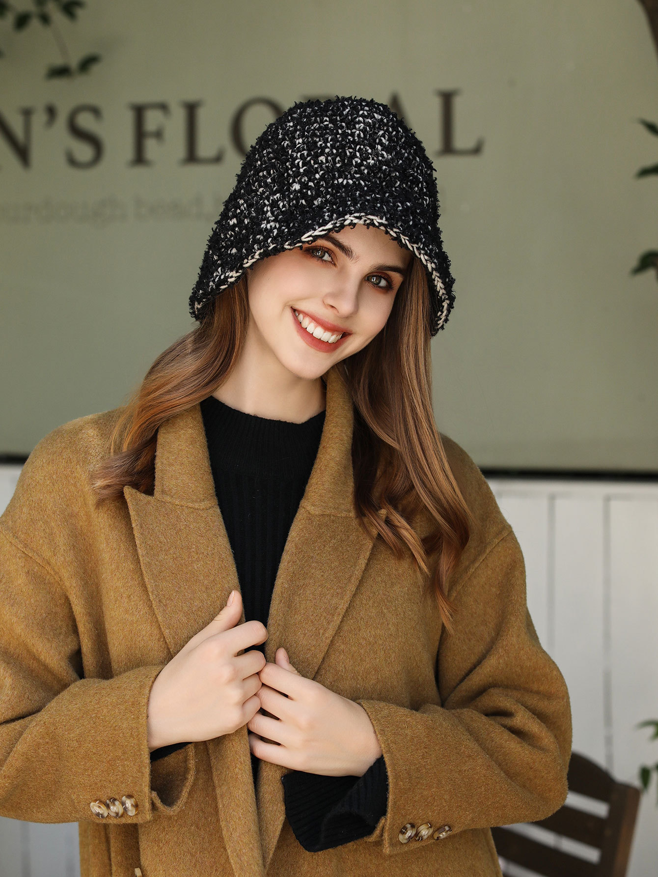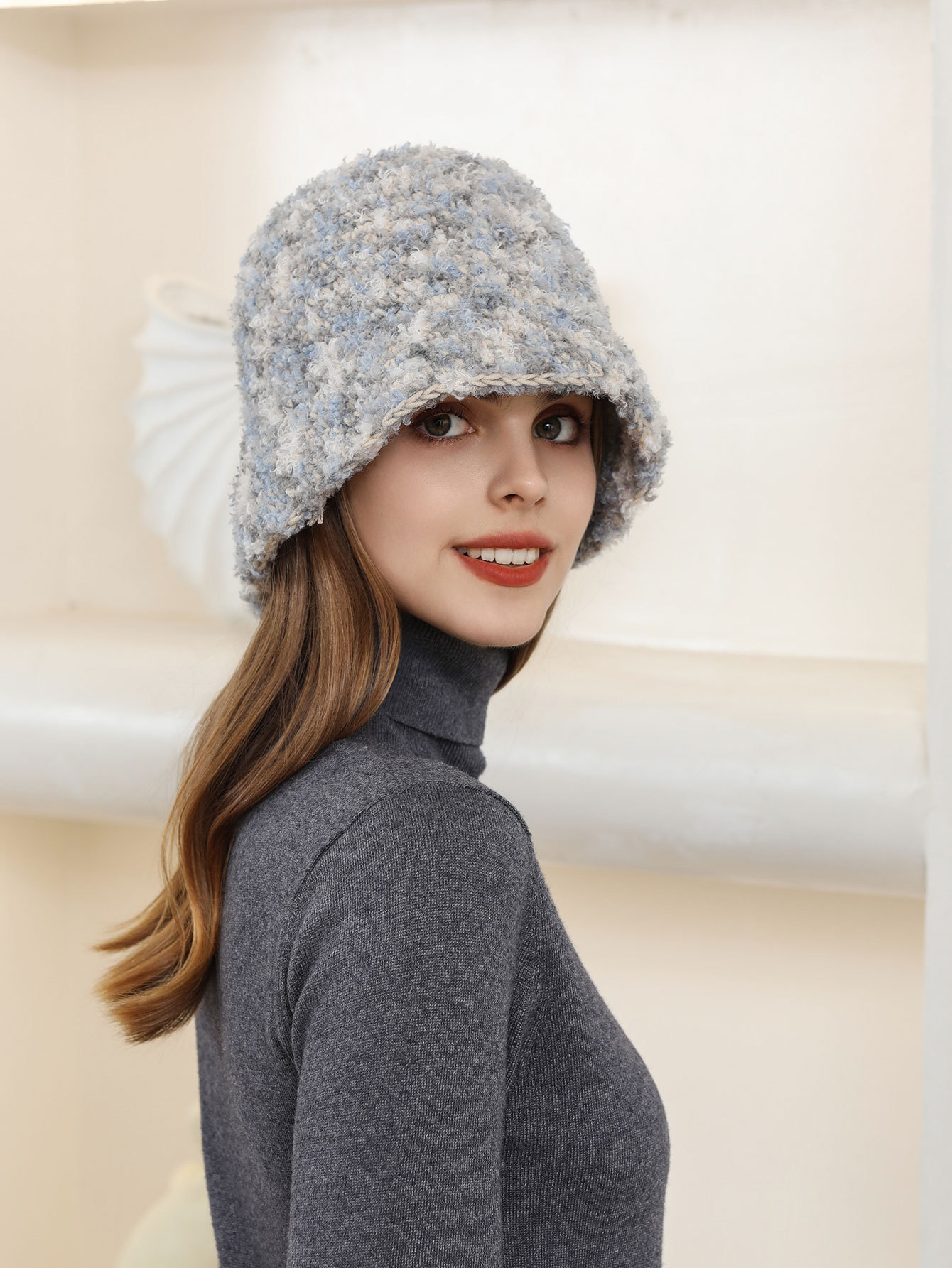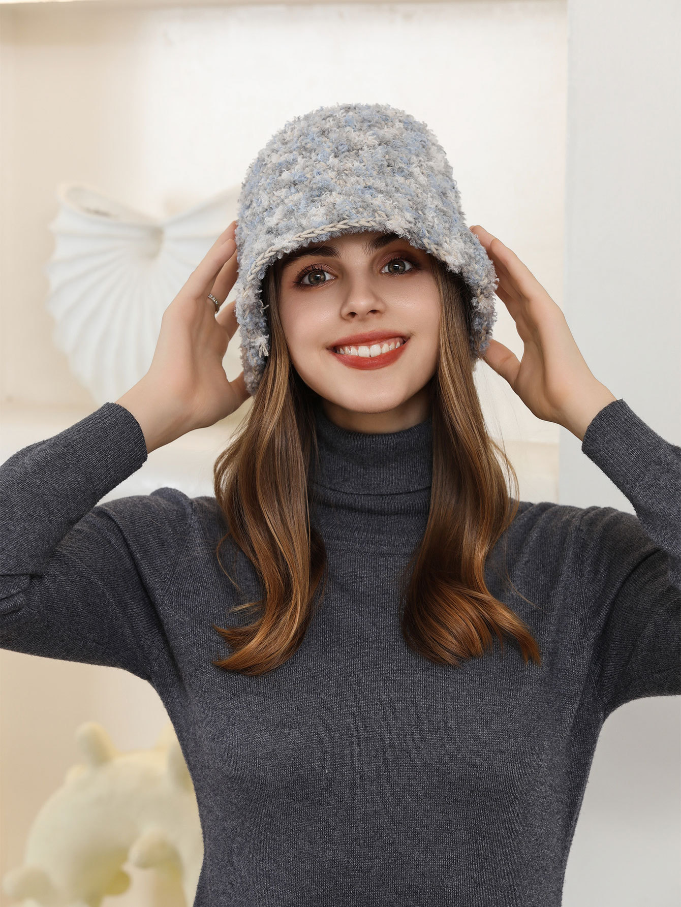 Gestreifter Anglerhut, großer Kopfumfang, sichtbares Gesicht, kleine einfarbige Gesichtsbedeckung, warmer Ohrenschutz, Strickmütze