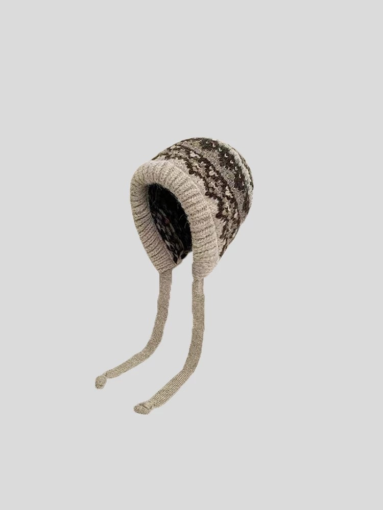 Koreanische Retro-Diamantgitter-Strickmütze mit Ohrenschützern, warm, passend zur verdickten Wollmütze