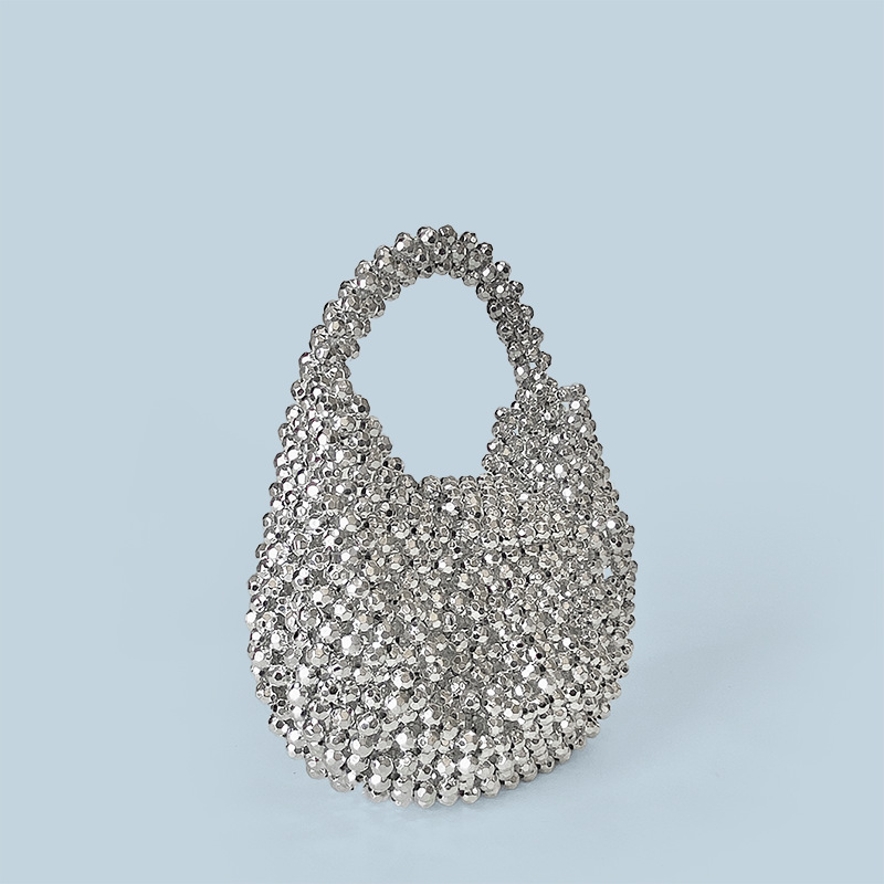 Sac à cocktail portable en cristal brillant fait à la main avec mini perles et texture avancée