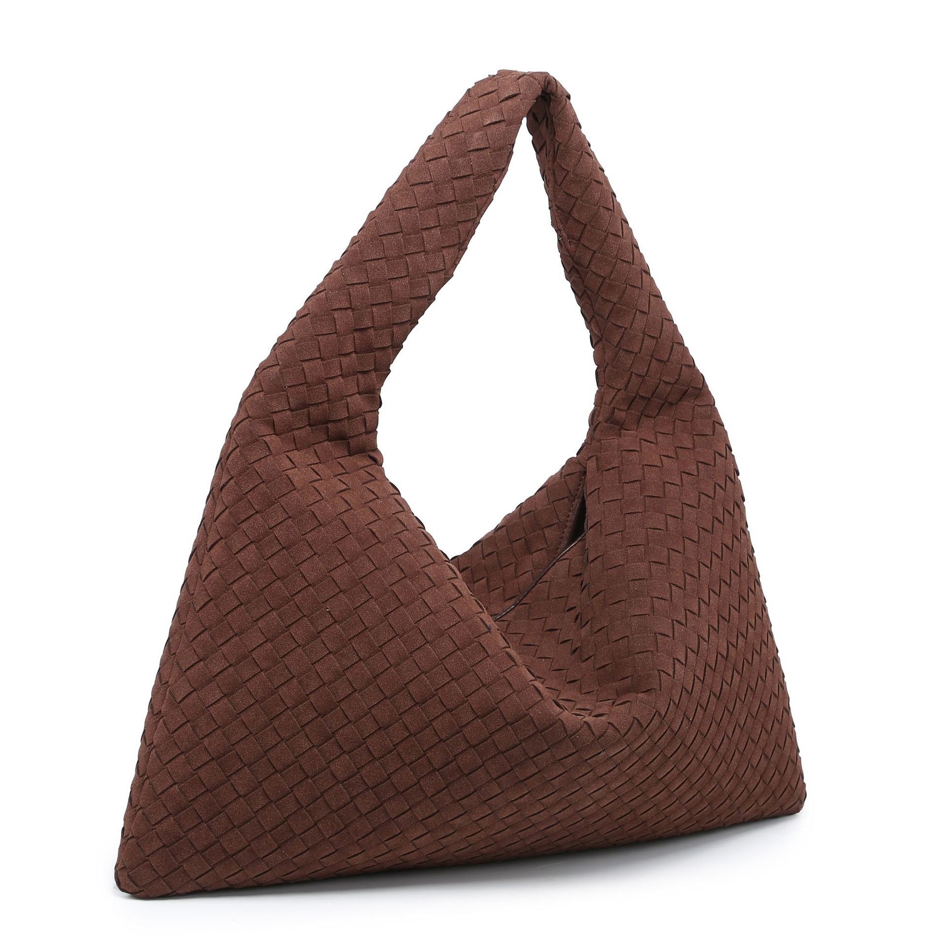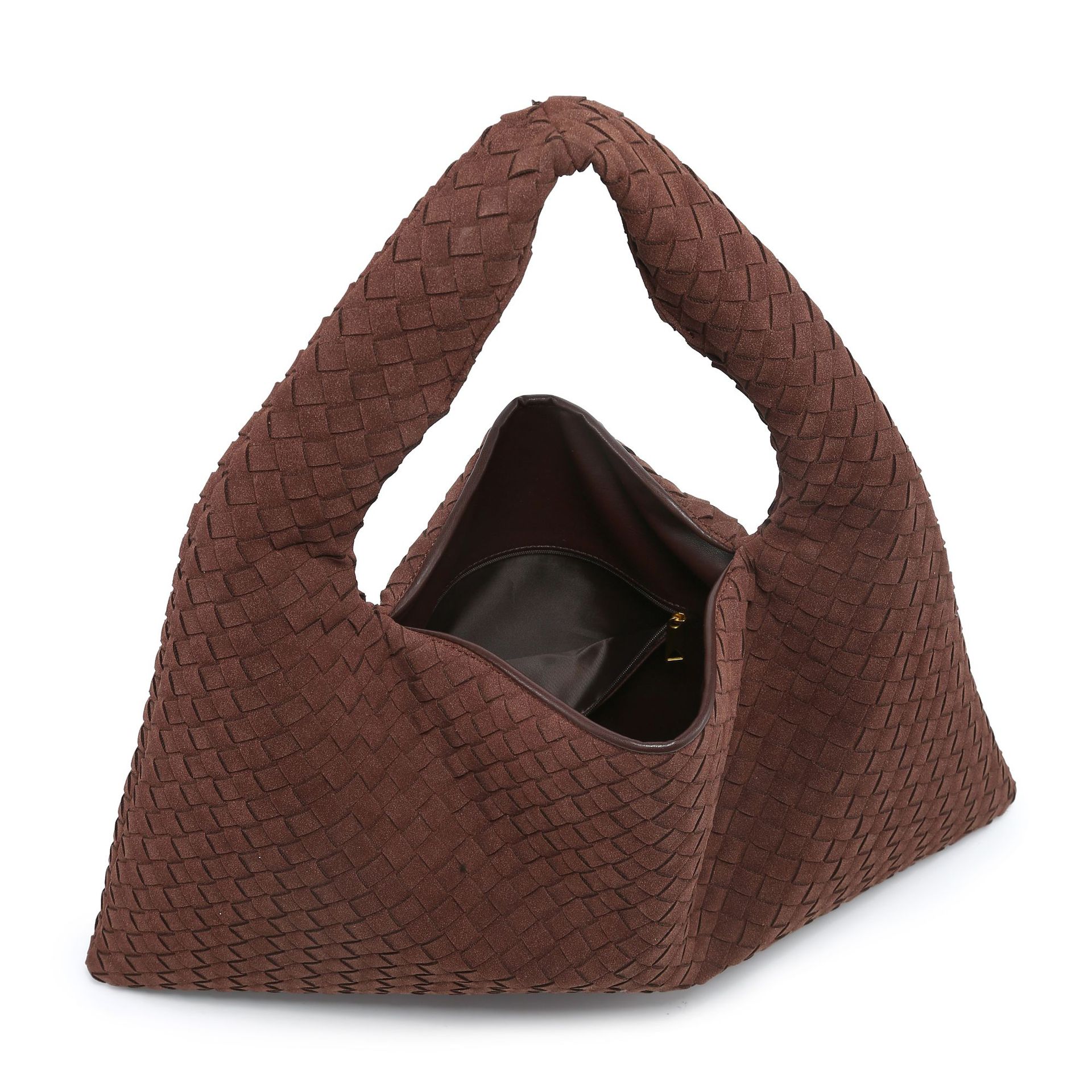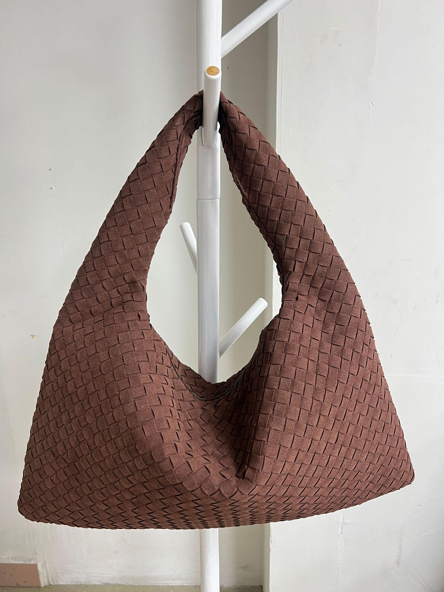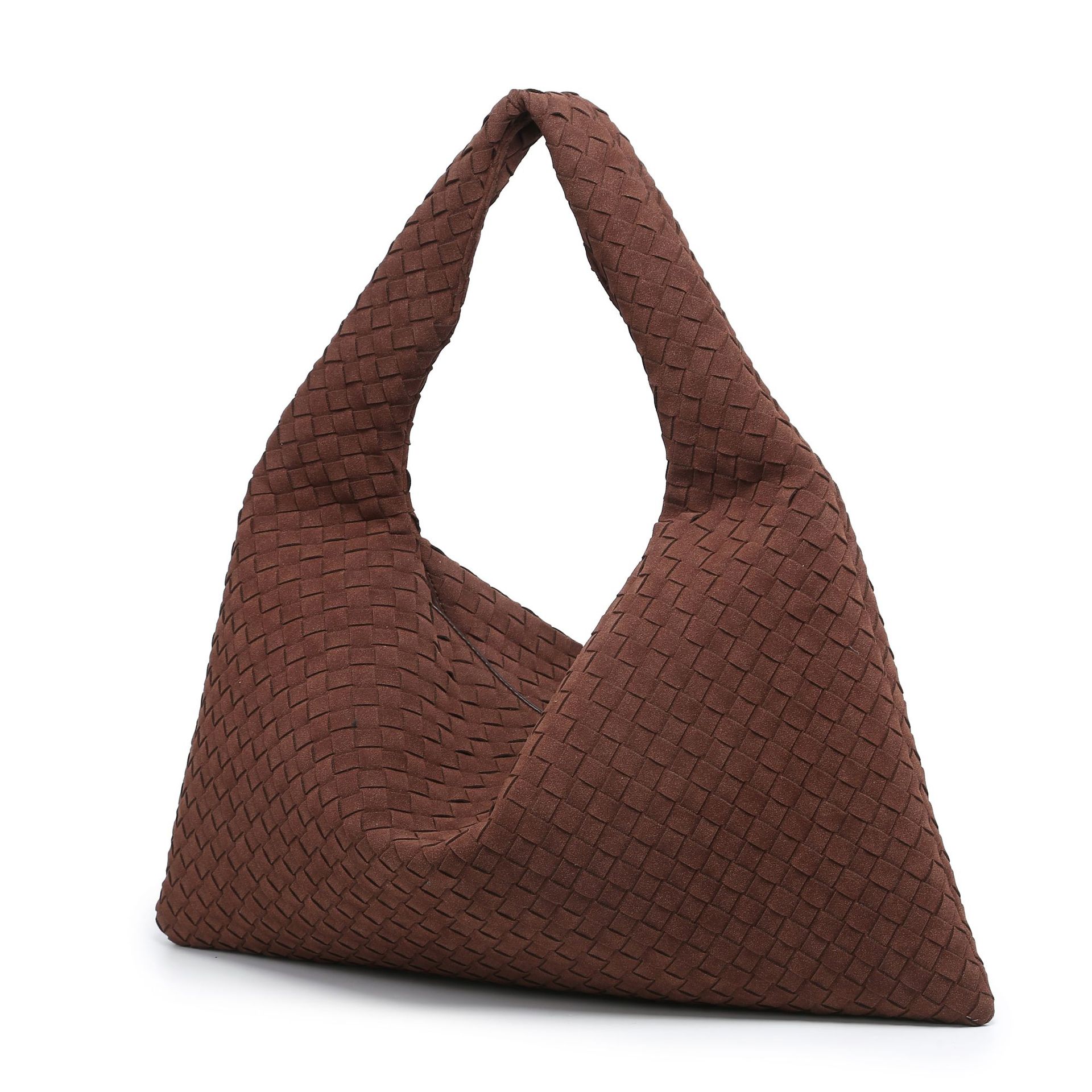 Sac à bandoulière en daim tissé à la main de grande capacité de couleur unie simple et décontracté