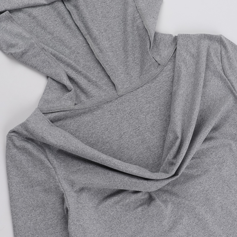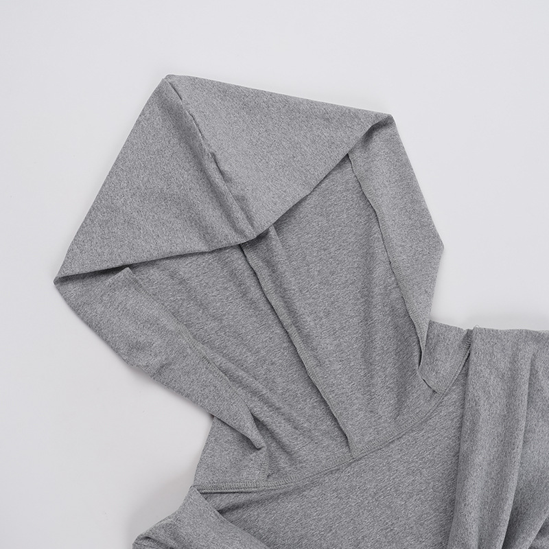 T-shirt à manches longues en tricot avec poche et chapeau, haut basique, décontracté, couleur unie, assorti