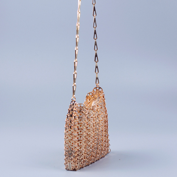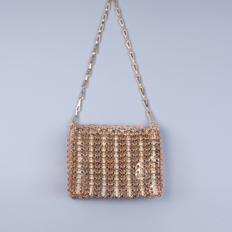 Sac à bandoulière en métal à sequins de grande capacité pour téléphone portable, sac à bandoulière fait à la main, tendance