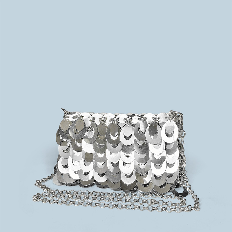 Sac messager populaire à mi-longueur avec chaîne à paillettes et découpes creuses