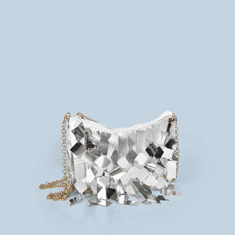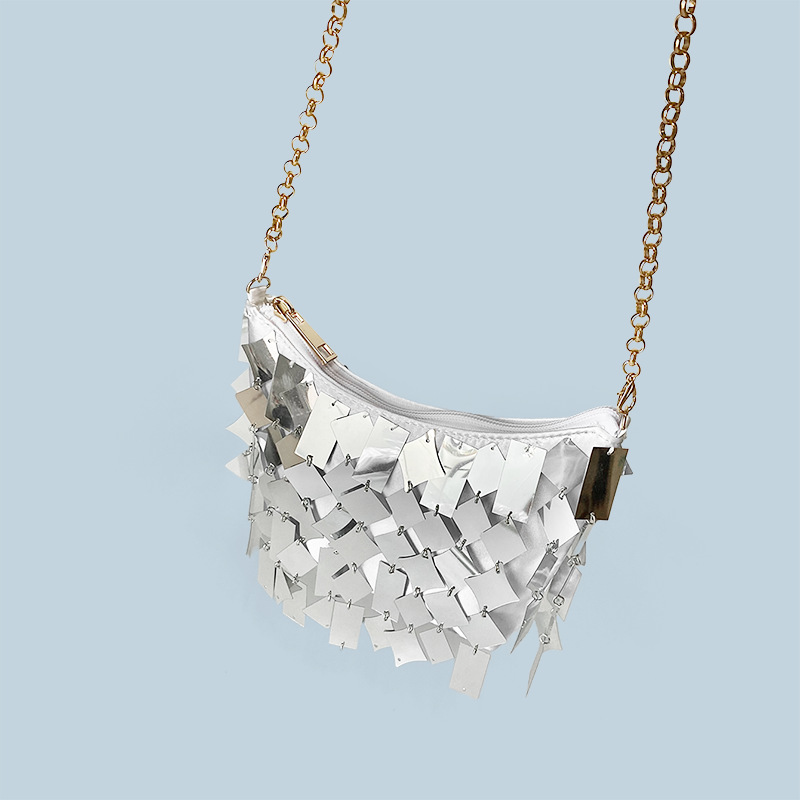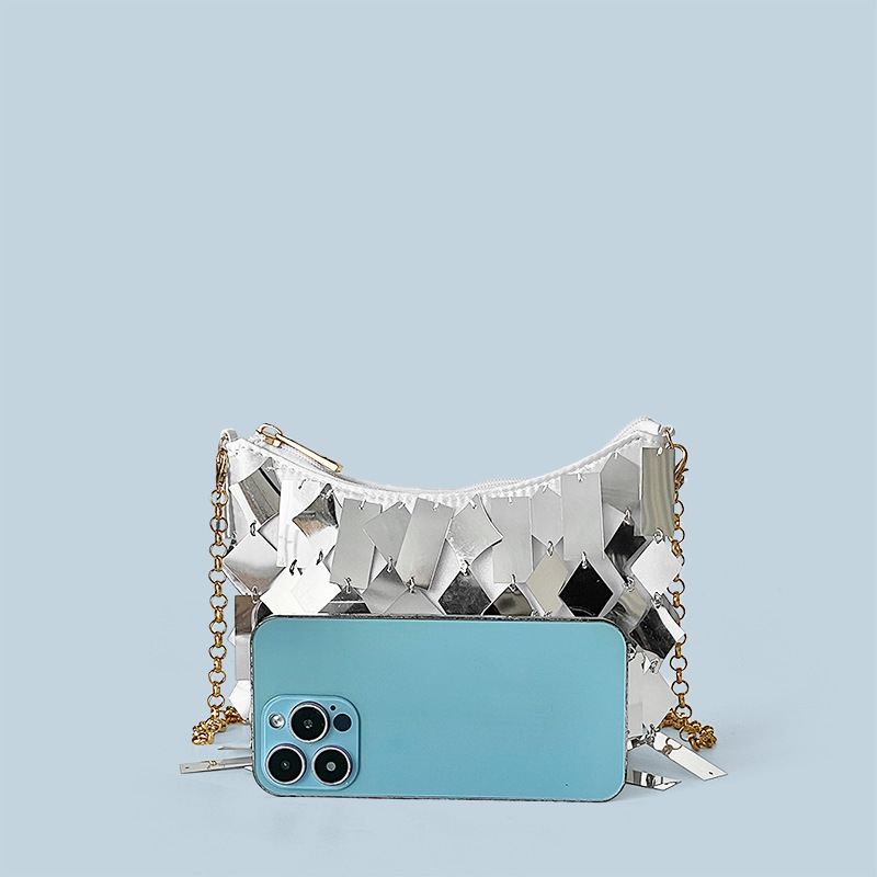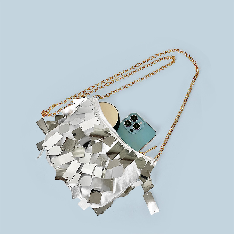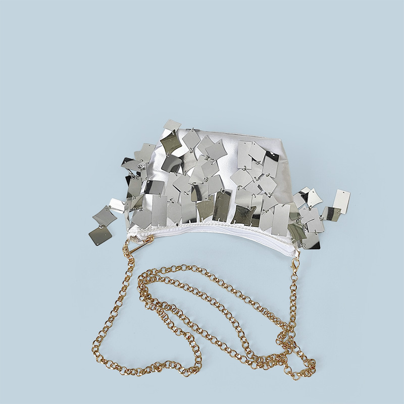 Sac rétro à bandoulière avec chaîne, petit sac à bandoulière, sac de dîner, sac à paillettes cousu à la main