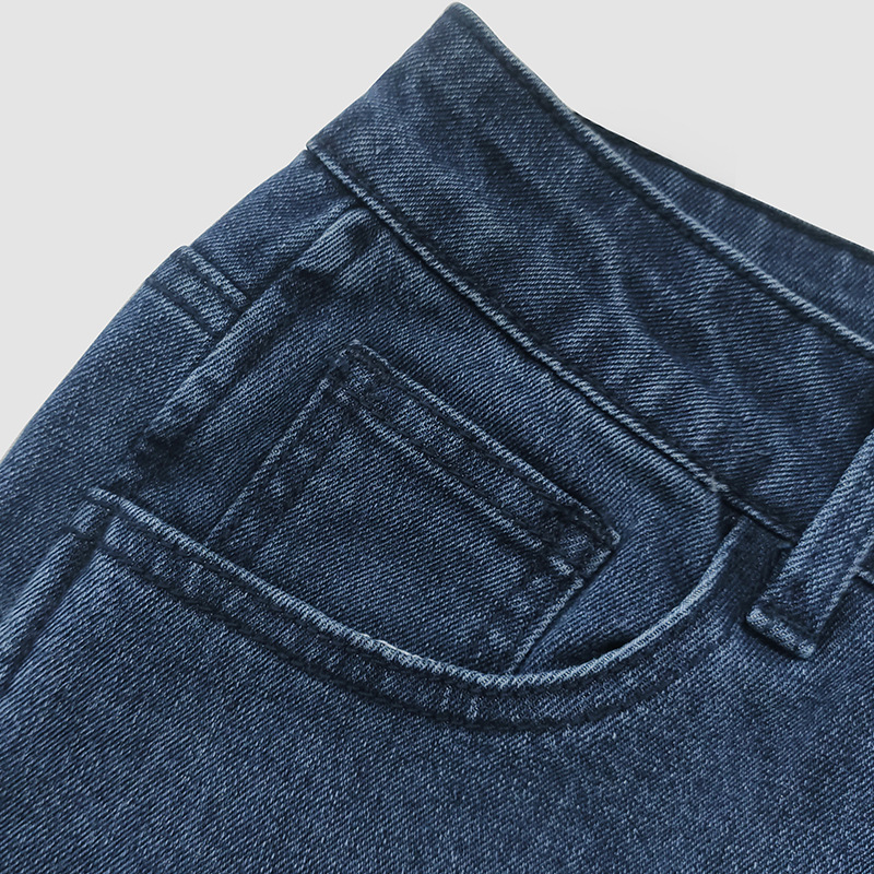 Jean rétro bleu taille haute amincissant légèrement évasé petit pantalon en fer à cheval pantalon extra long extensible Burr