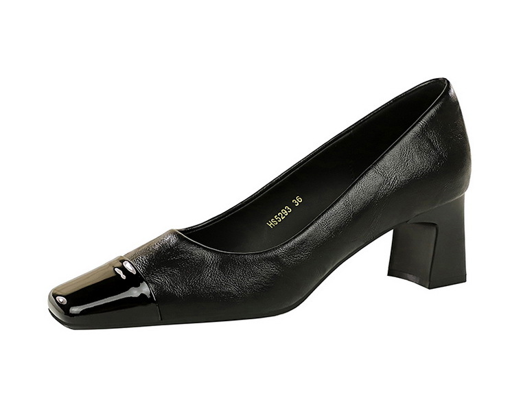 Chaussures rétro à talon épais et talon moyen, coupe basse, coutures, bout carré, chaussures de cocktail à une seule couche pour femmes