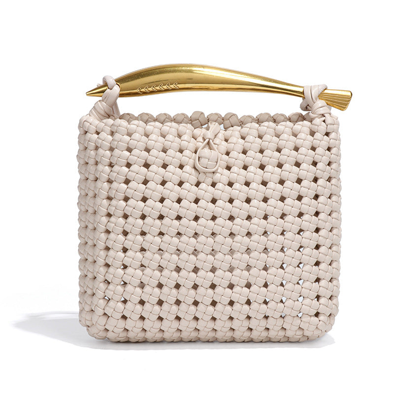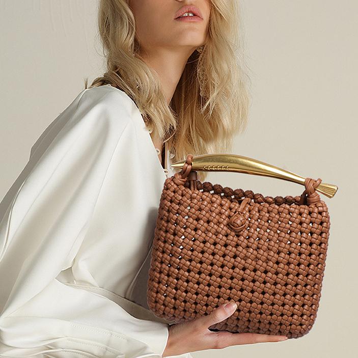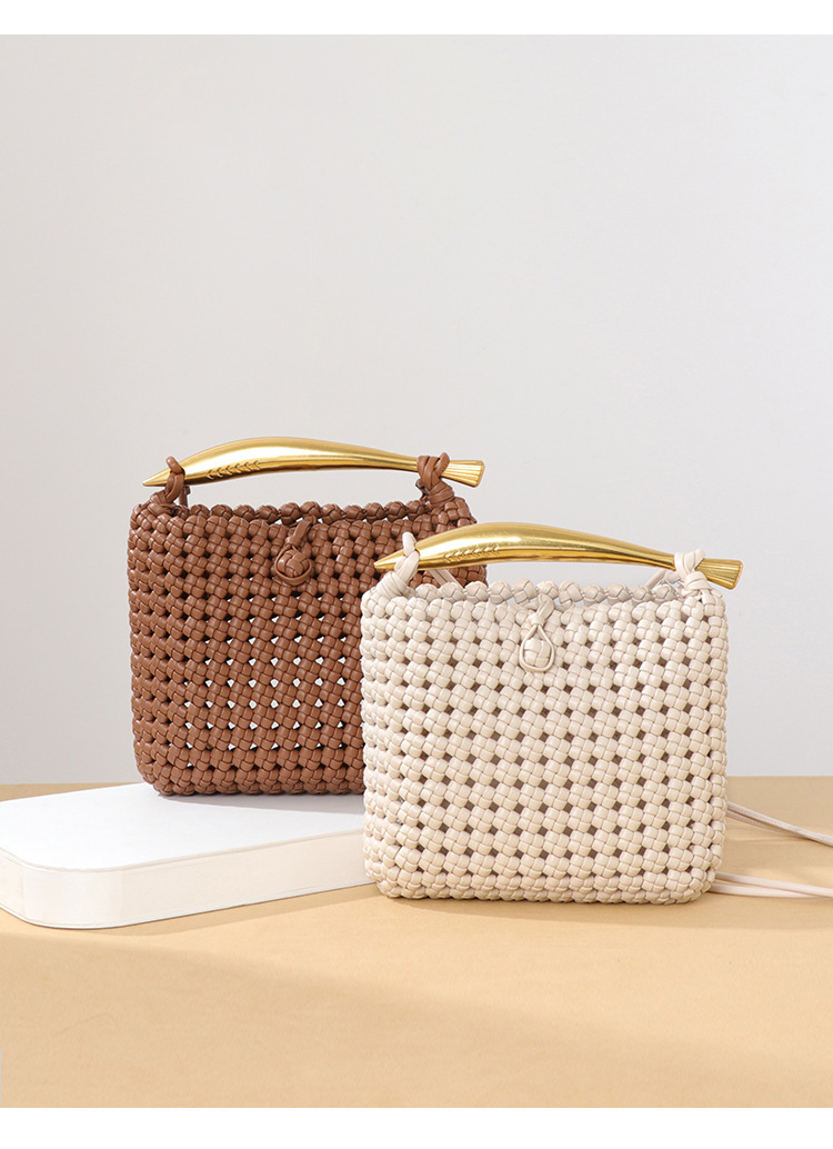Sac à sardines tissé creux découpé à la main petit sac carré sac messager de couleur contrastée de conception tissée industrielle lourde