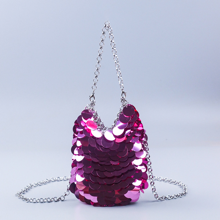 Sac à paillettes en métal brillant et bombé, tissé à la main, pour cocktail, téléphone portable