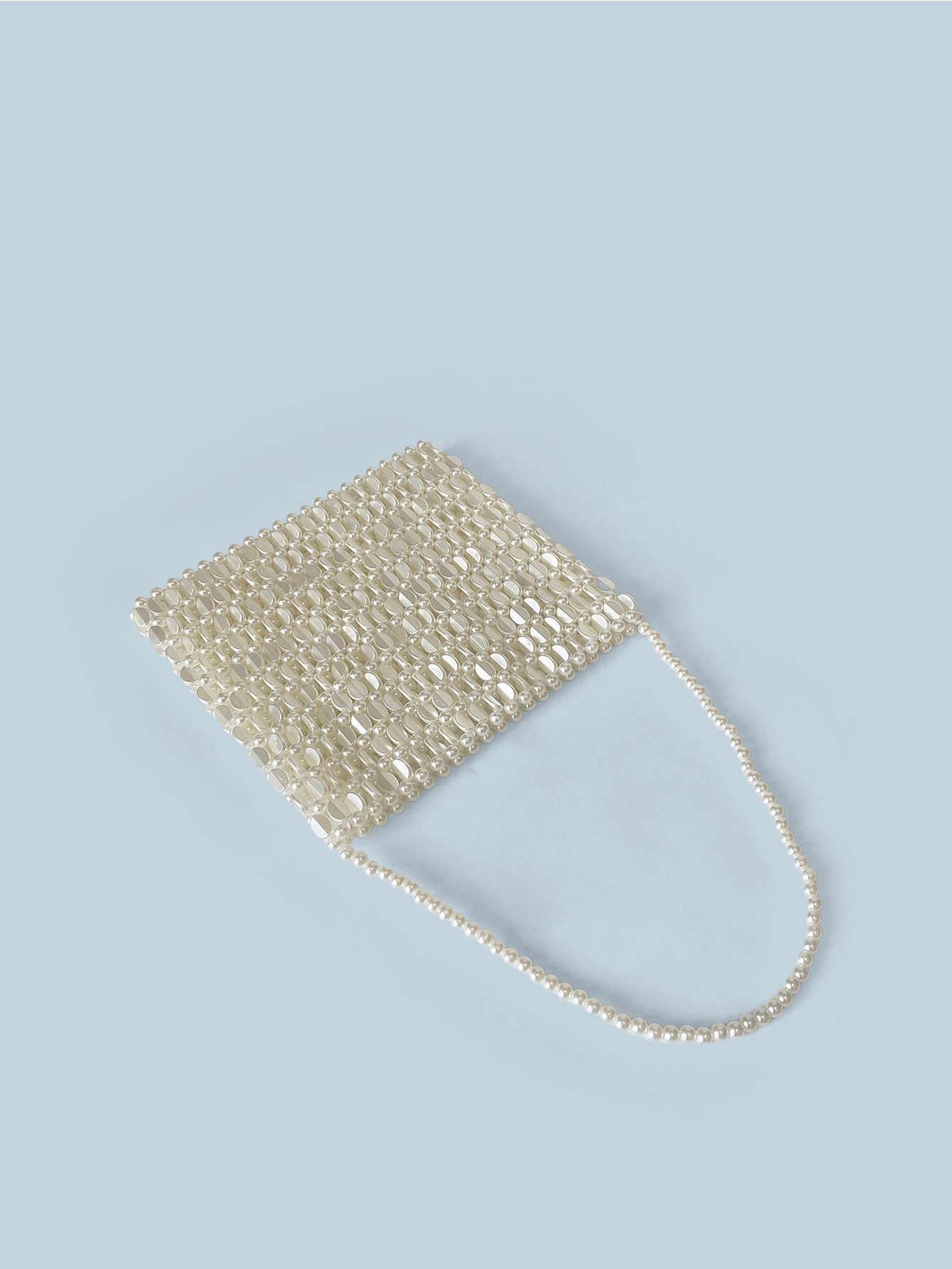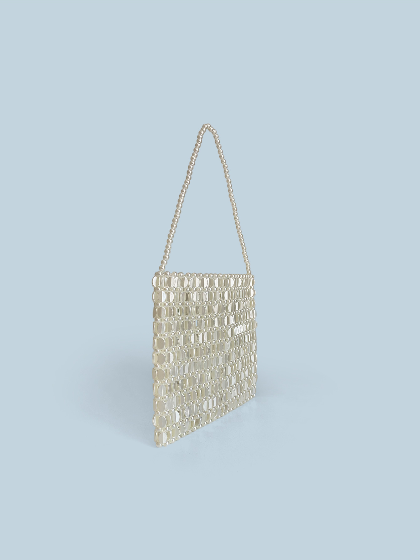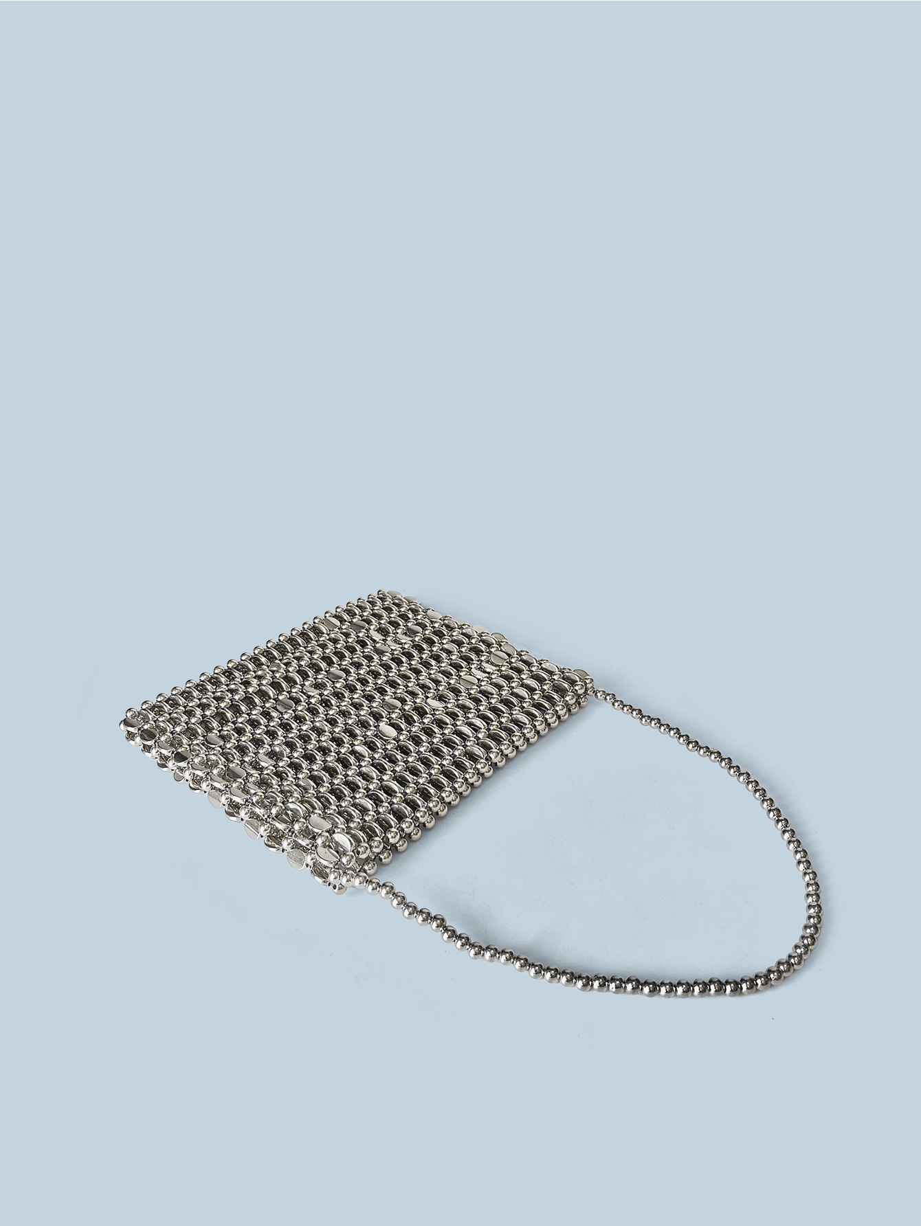 Sac à perles fait main en métal argenté brillant, sac tissé à la main pour téléphone portable