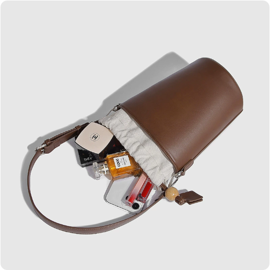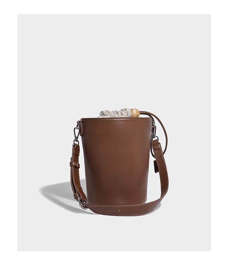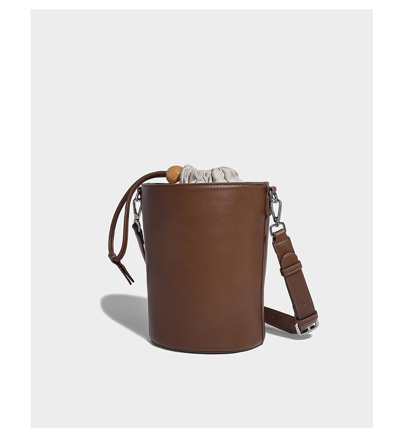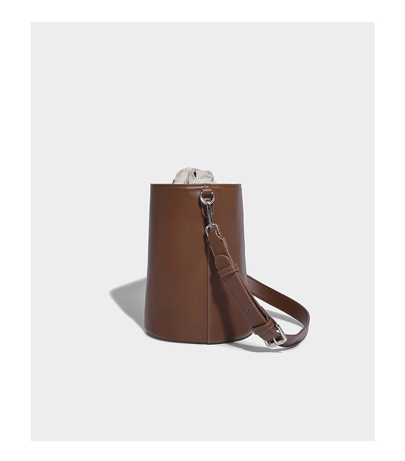 Sac seau en cuir souple avec cordon de serrage Sac de bureau cylindrique en cuir souple Sac messager à bandoulière texturé rétro