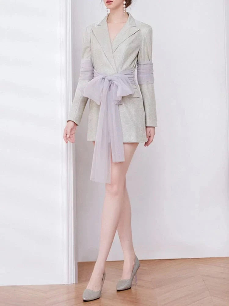 Le design complexe et la construction détaillée font du blazer « Nightingale » un incontournable de votre garde-robe. Il est composé d'un mélange de polyester et de coton de qualité supérieure, d'un revers cranté et d'un ruban froncé décoratif pour un look que vous ne trouverez nulle part ailleurs. Il peut servir de blazer oversize ou de mini-robe séduisante. Vous ne voudrez plus quitter la maison sans cela.