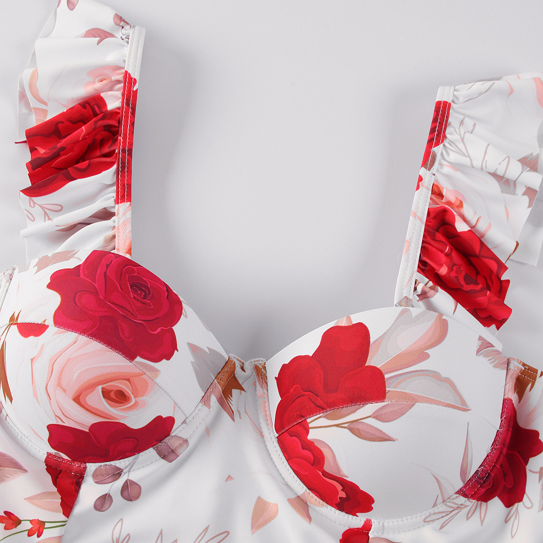 Fresh Floral Print One Piece Swimsuit Hard Bag One Piece Swimsuit