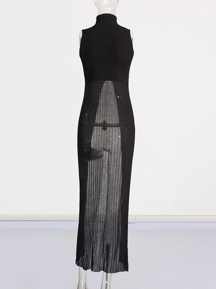 High Neck Sleeveless Split Knit Vest Top