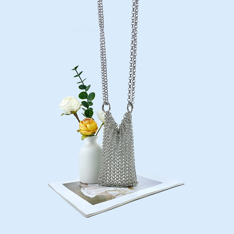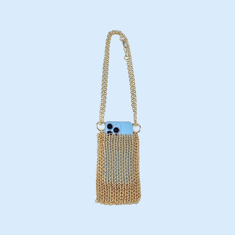 Metal Shiny Hand Woven Chainmail Mobile Phone Bag Crossbody Mini Hollow Out Cutout Small Bag Exquisite Light Luxury