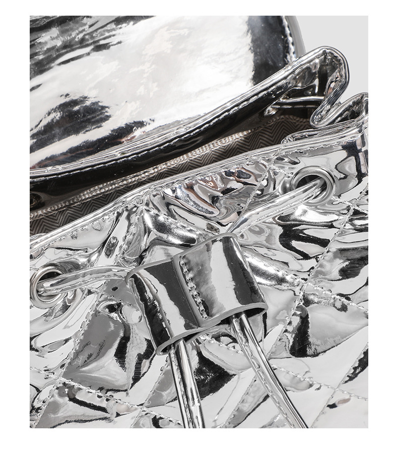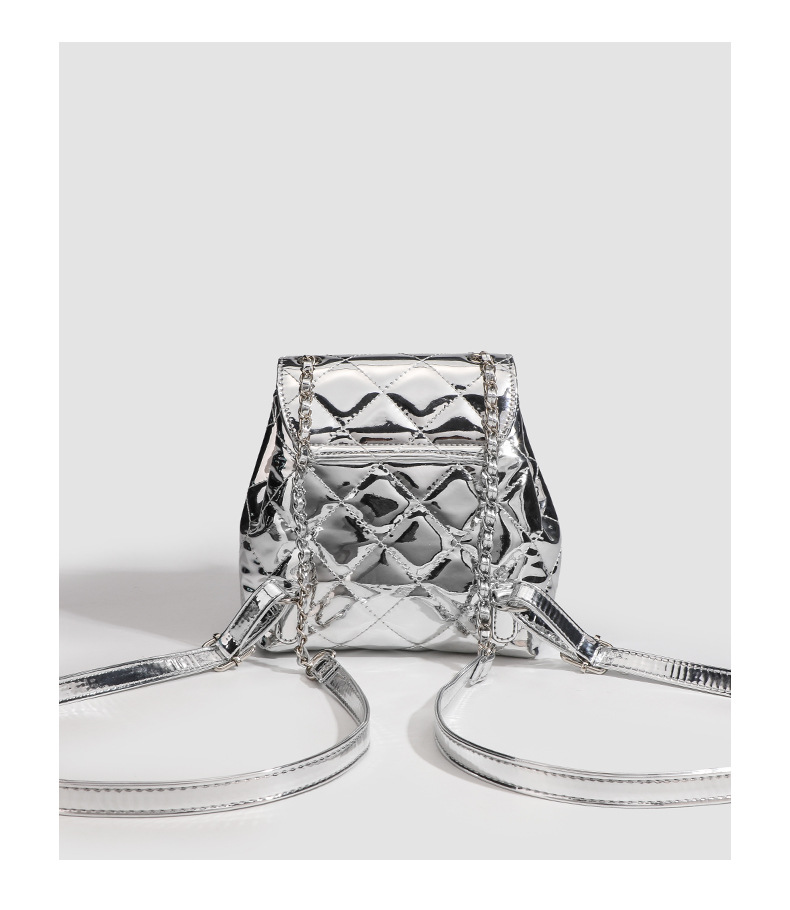 Patent Leather Glossy Diamond Embroidery Thread Backpack Trendy Chain Backpack Mini Student Small Schoolbag