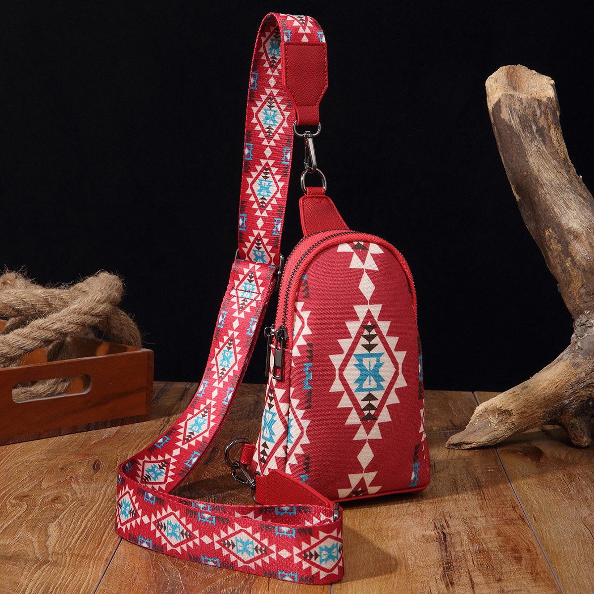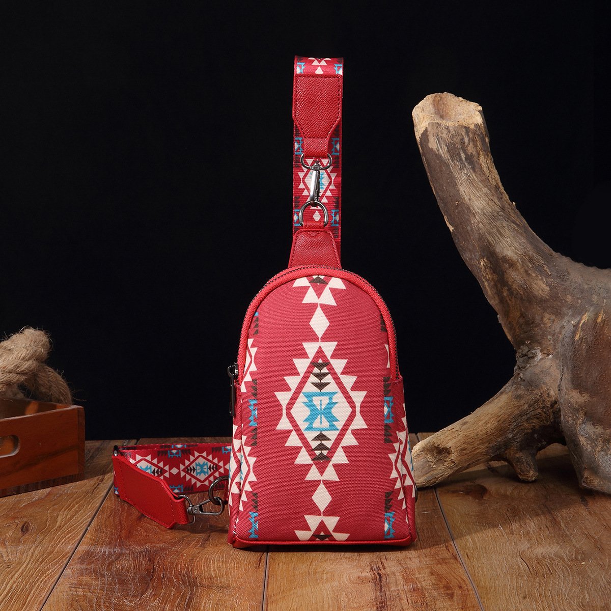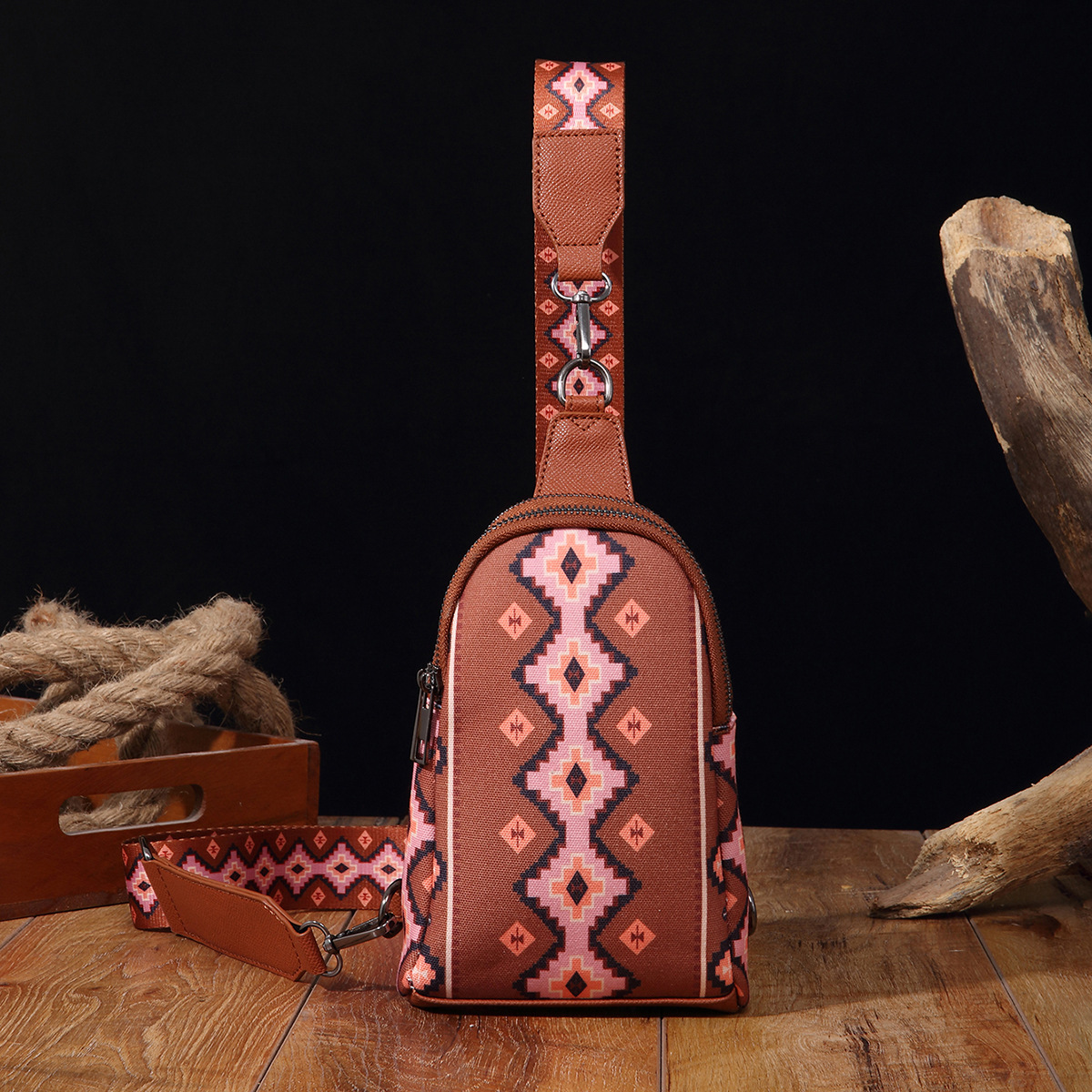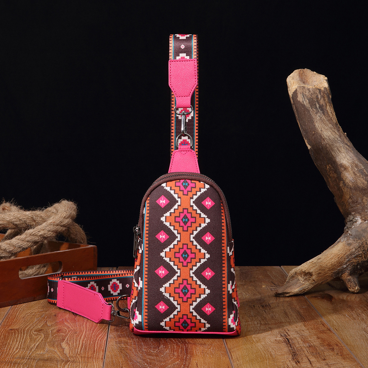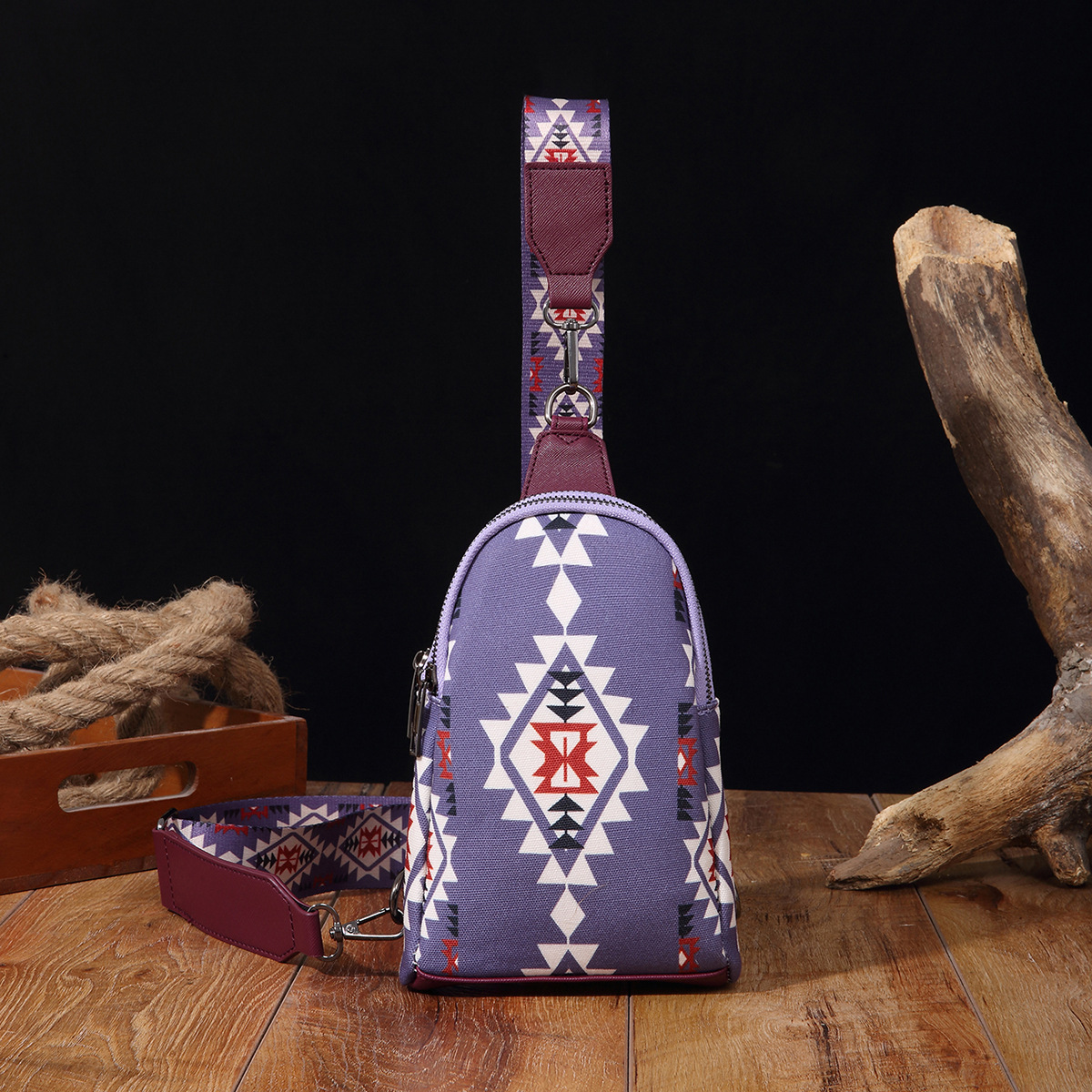 Retro Canvas Printed Bohemian Hand Holding Chest Bag Crossbody Bag