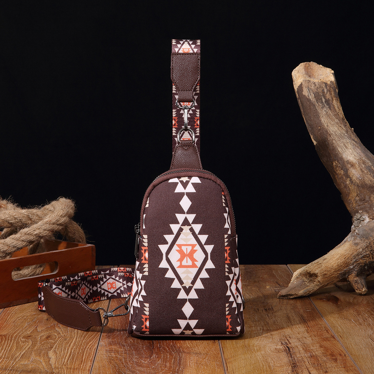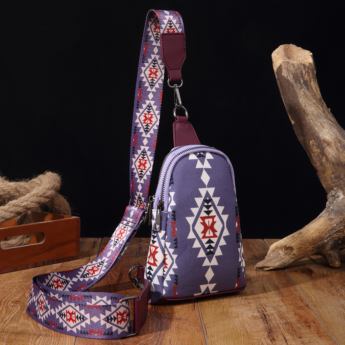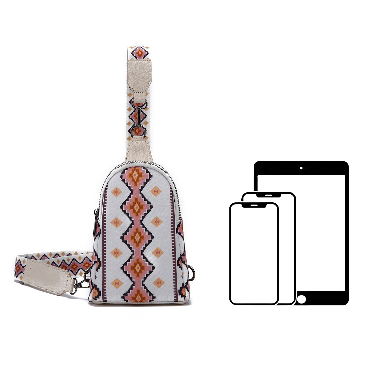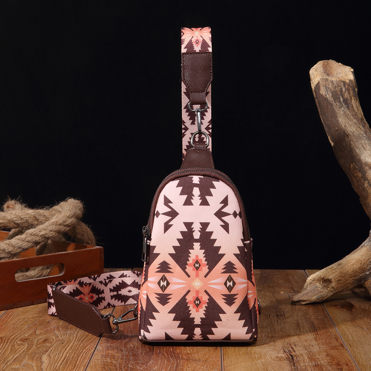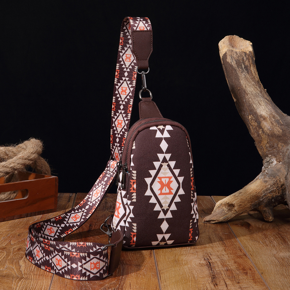 Retro Canvas Printed Bohemian Hand Holding Chest Bag Crossbody Bag