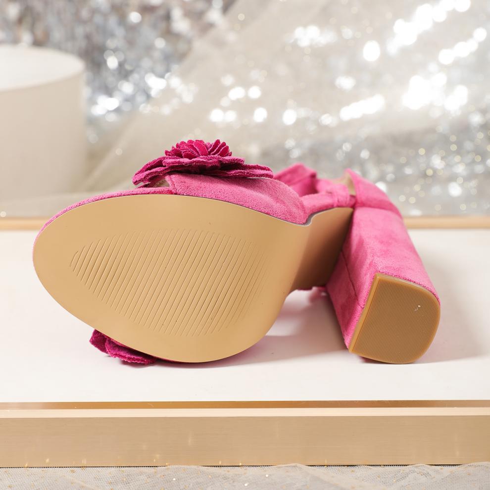 Suede Lace up Strap Chunky Heel High Heels Open Toe Sandals Floral Embroidered Feet Bare Strap Wedding Reception Shoes